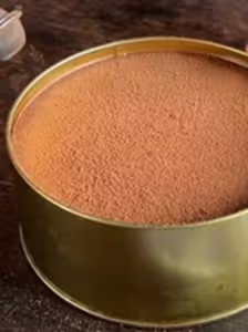 3 layers of Chocolate in a tin. Chocolate Cake topped with Chocolate ganache topped with a layer of melted chocolate
